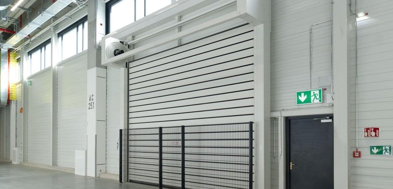 Die Komponentenprüfstände im ersten Stock des Fahrzeugsicherheitszentrums werden zusätzlich durch Schnelllauftore von EFAFLEX gesichert. Diese Tore erfüllen nicht nur den Zweck, unerwünschte Besucher fernzuhalten, sondern dienen auch als Nachströmöffnungen für Frischluft. Sie sind Teil des Brandschutzkonzepts des Gebäudes und tragen somit zur Sicherheit im Falle eines Brandes bei. Die Tore von EFAFLEX erfüllen somit sowohl die Anforderungen an den Einbruchschutz als auch an den Brandschutz.